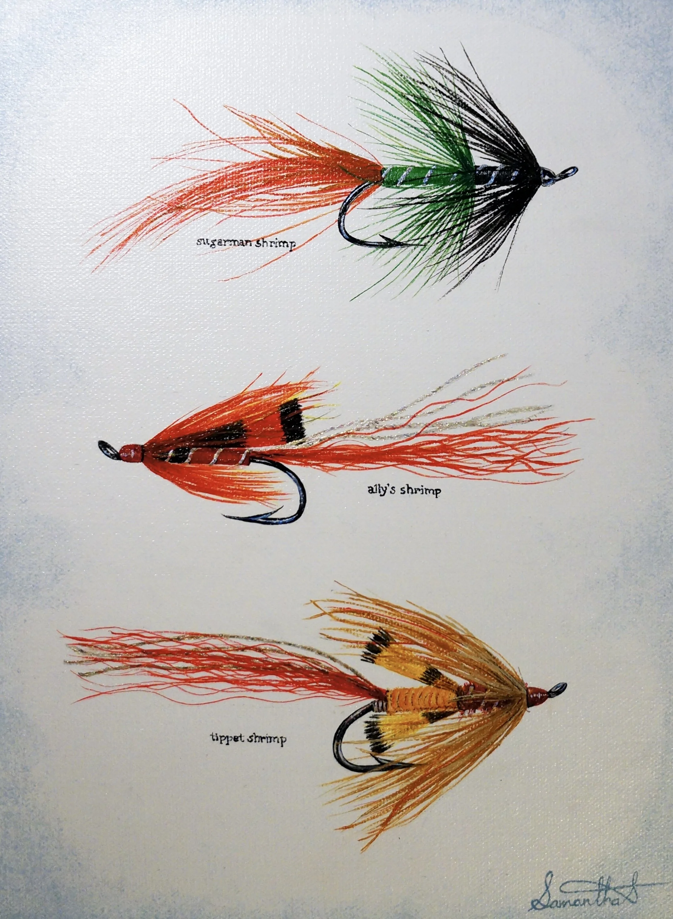“Dear Samantha: I have stored the beautiful painting of the fishing fly lure I purchased from you yesterday as a Christmas gift for my husband. I am part of a team that organizes an annual fall artisan fair and we are always on the lookout for artists that would fit well into the sale. Your art and candles would be a great addition!”
